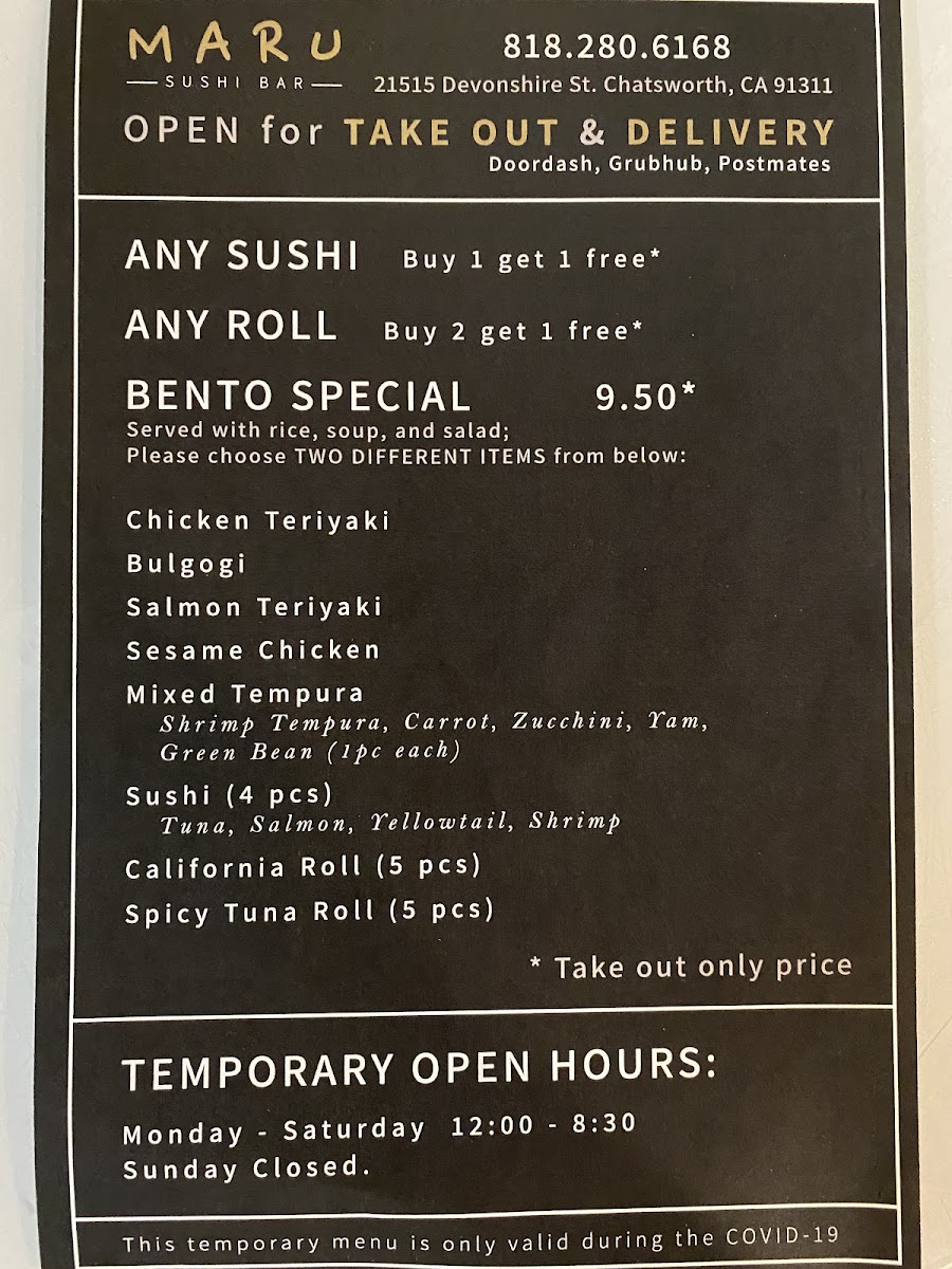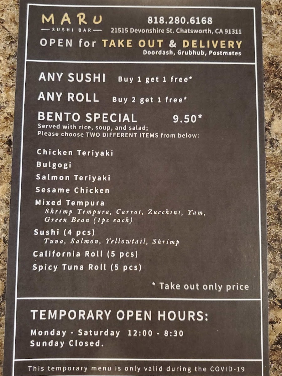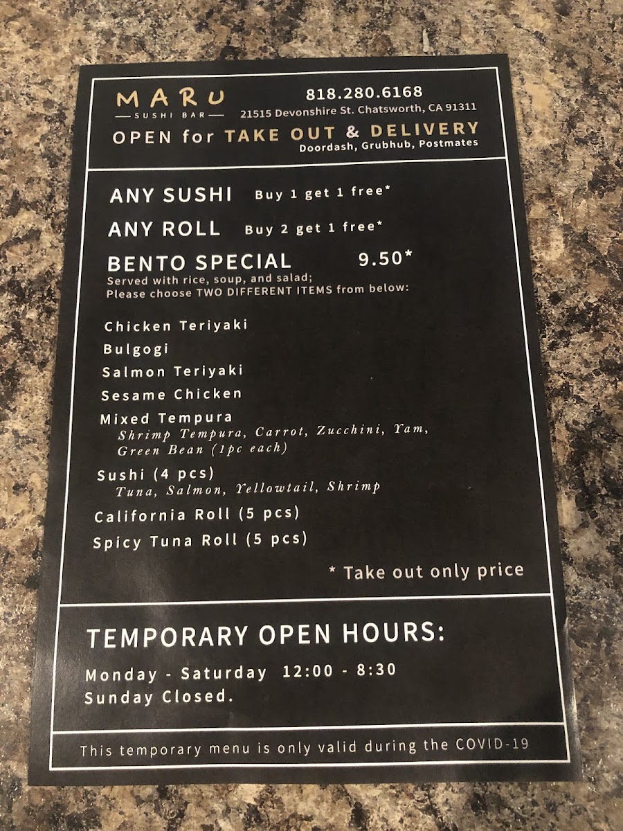 Welcome to Maru Sushi Bar, located in the heart of Chatsworth, CA. This sushi restaurant offers a delightful escape for sushi aficionados and casual diners alike. Whether you’re a seasoned sushi lover or just curious to explore the world of sushi, Maru stands out as a prime destination where quality and variety meld beautifully.
