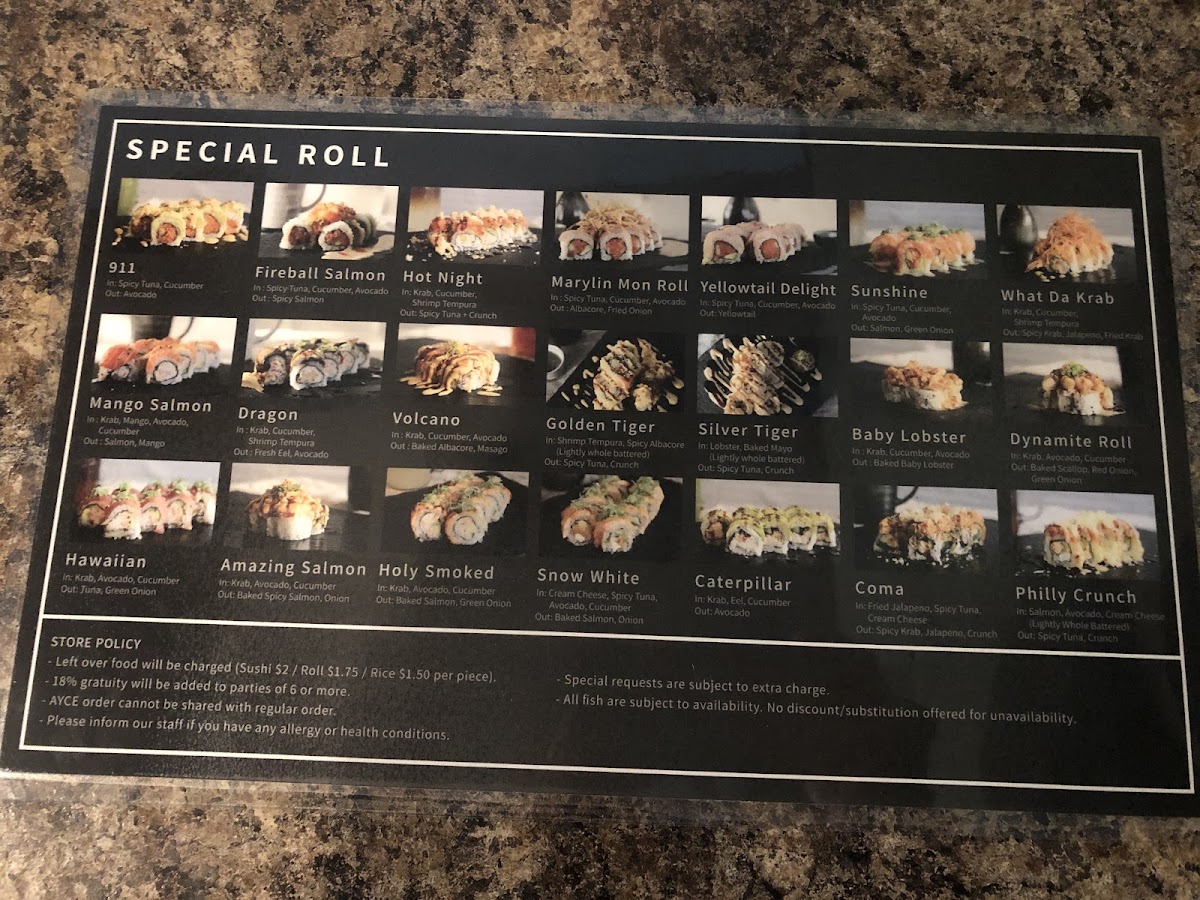 At Maru Sushi Bar, you'll be treated to a vibrant array of sushi options, with a menu that caters to every taste preference. Try their Hawaiian Roll, featuring a tantalizing combination of flavors at just $15.95, or indulge in the Marylin Mon Roll, a fusion of spicy tuna, cucumber, avocado, and albacore, crowned with crunchy fried onion for an additional $15.95. If you're in the mood for something unique, don't miss the Coma Roll, tailored especially for special roll enthusiasts, also priced at $15.95. Each dish is crafted with fresh ingredients, bringing a quality you can taste in every bite.